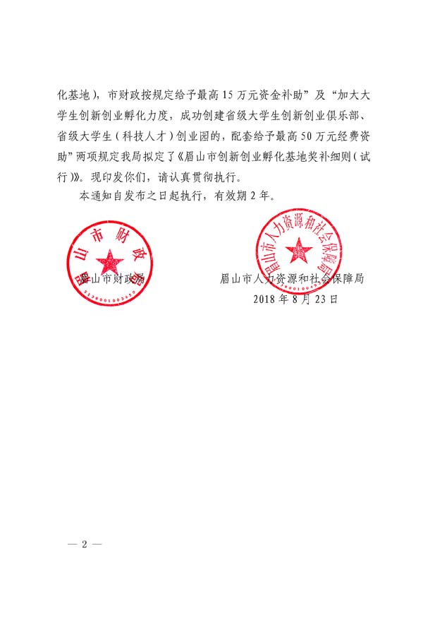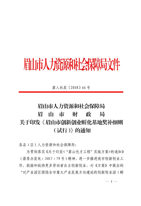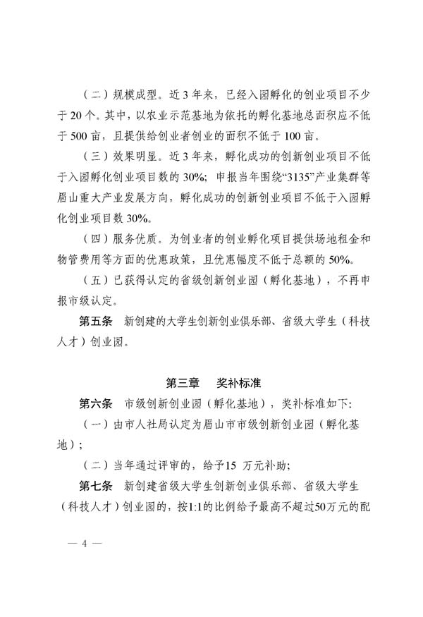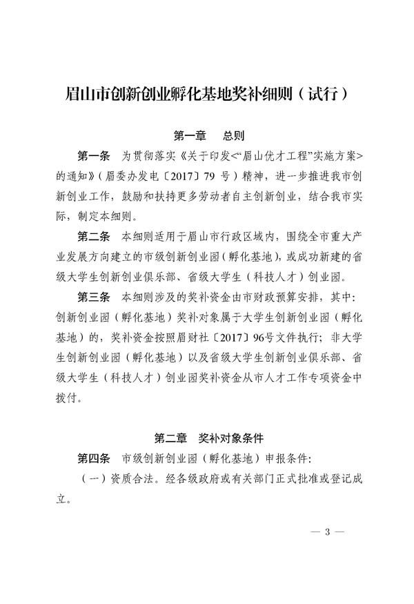 眉山市創(chuàng)新創(chuàng)業(yè)孵化基地獎補細(xì)則(試行)