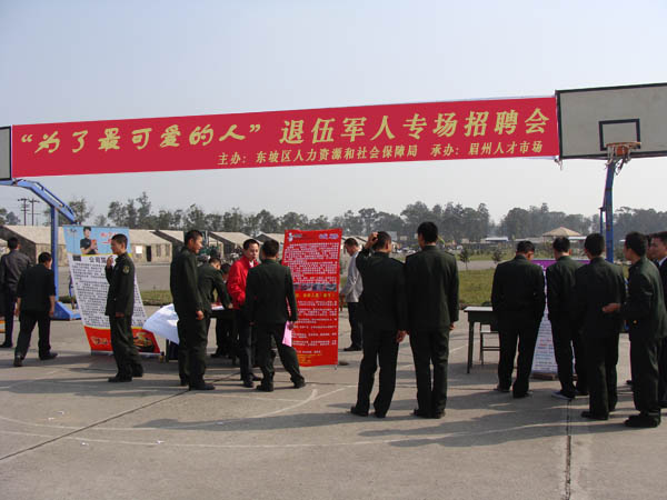 2010年12月上旬,東坡區(qū)人力資源和社會(huì)保障局為駐眉某部隊(duì)的退伍軍人舉辦專(zhuān)場(chǎng)招聘會(huì)。